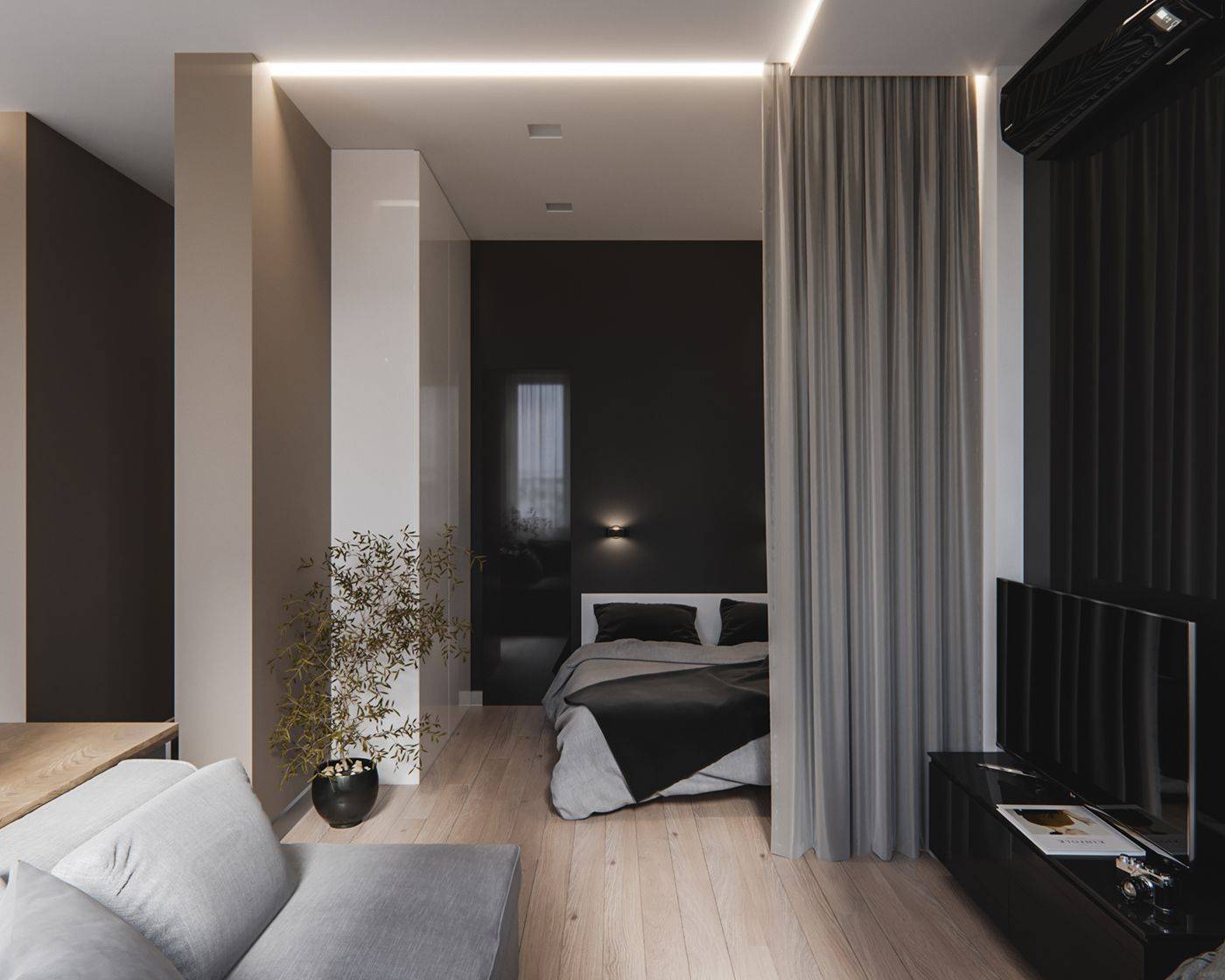 Варианты зонирования однокомнатной квартиры