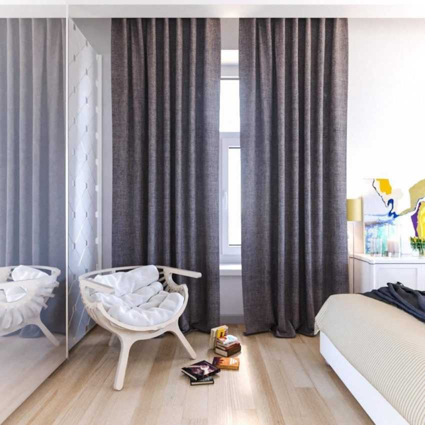 Рассмотрим, какие затемненные шторы подойдут в серую спальню.
