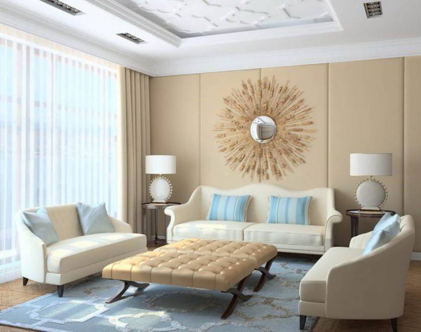 Если стены вашей комнаты включают несколько разных обоев, определиться с акцентами будет сложнее. Выяснить, какого цвета мебель подойдет к бежевым обоям можно, глядя на орнаменты и узоры на стенах. К примеру, если акцентная стена оформлена бежевыми обоями с цветами ярких тонов, этот оттенок можно повторить в мягкой мебели и текстильных элементах.