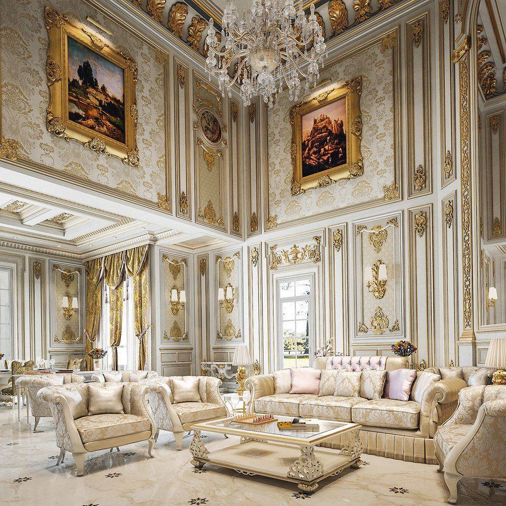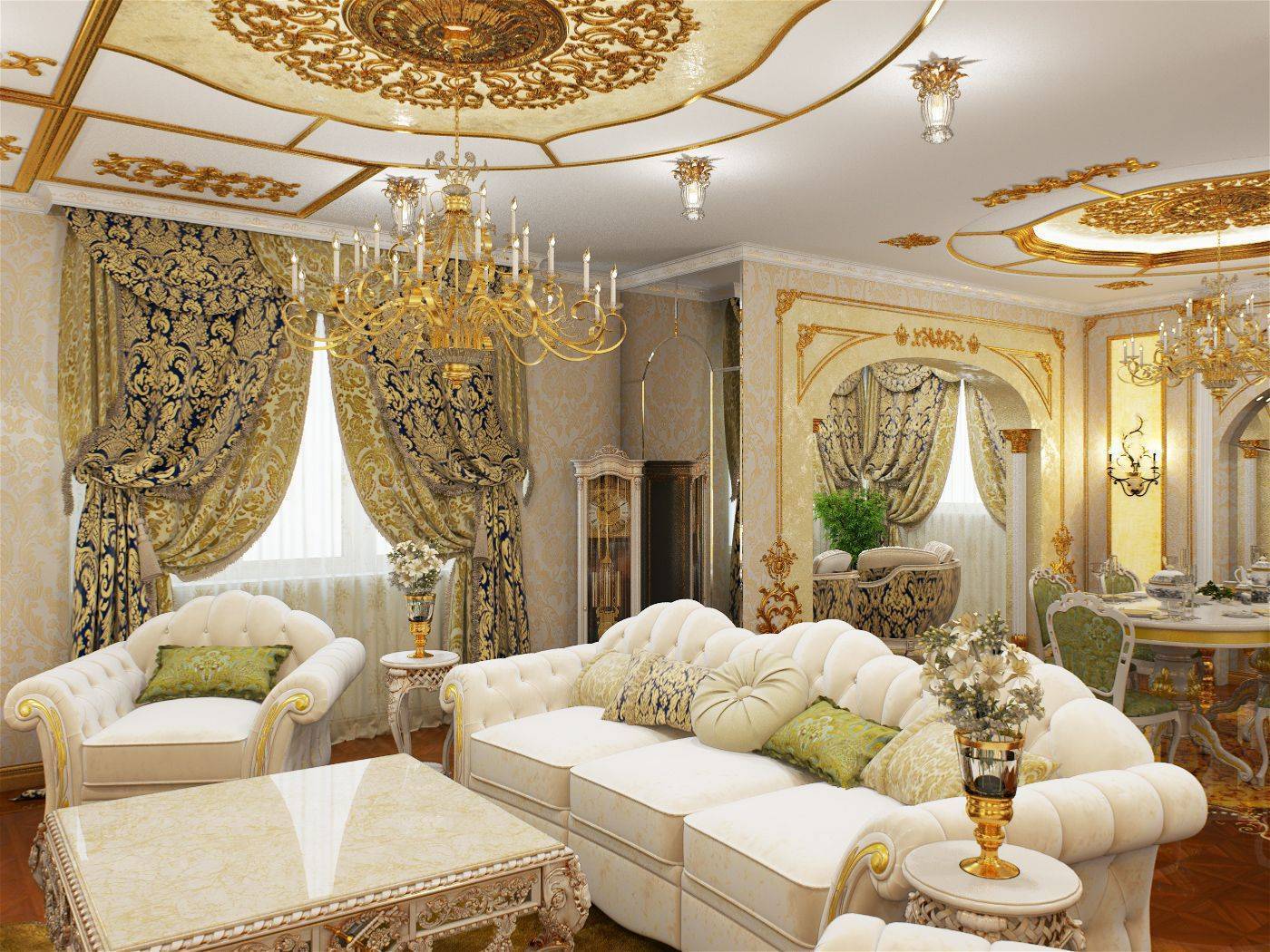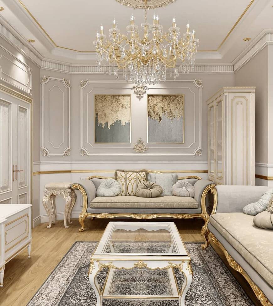 Гостиные барокко отражают страсть к художественному мастерству, искусству, красоте и роскоши. Сложно вырезанная мебель с ослепительными деталями и высококачественной резьбой по дереву является одним из их наиболее характерных элементов. Барочный стиль интерьера легко подчеркнут изысканным диваном. В гостиной вы будете отдыхать на мягкой мебели с позолоченным каркасом и стильно профилированными ножками. Пространство заполняется комодами и шкафами, инкрустированными черным, красным или розовым деревом, золотыми канделябрами, украшенными статуэтками. Гостиная в стиле барокко может быть подчеркнута столом с причудливо вырезанными ножками и столешницей, покрытой слоем 23-каратного золота.