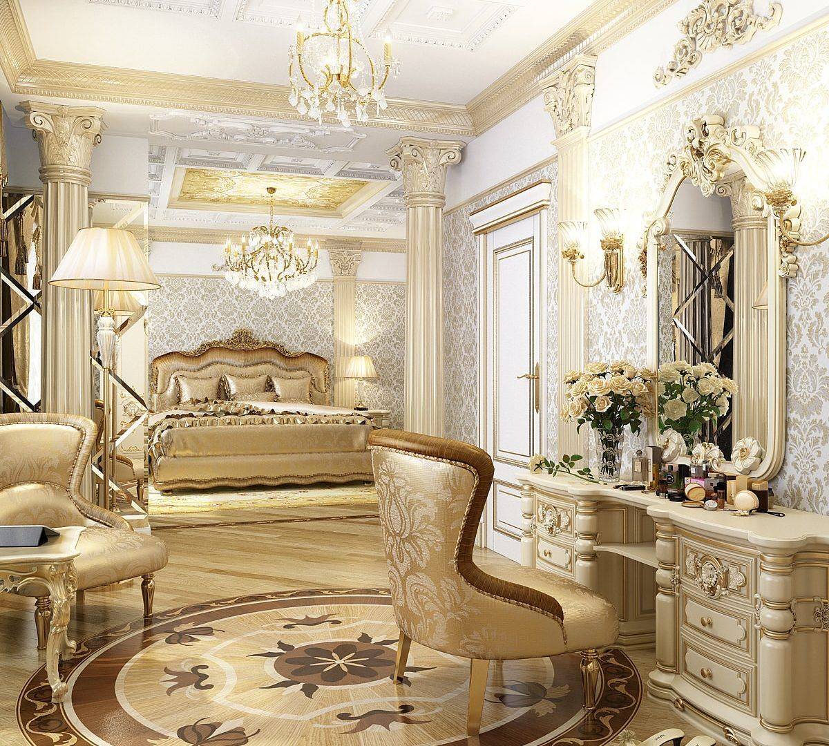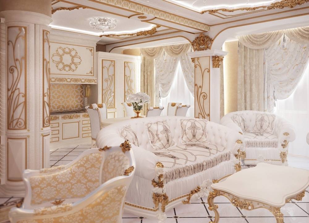 Функциональность интерьера отходит на второй план – все предметы должны быть прежде всего роскошными и престижными, а уже потом – удобными для пользования