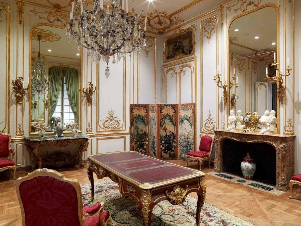 Для стиля характерны фрески на потолке, гобелены на стенах, колонны и лепные элементы, а также орнамент в отделке.