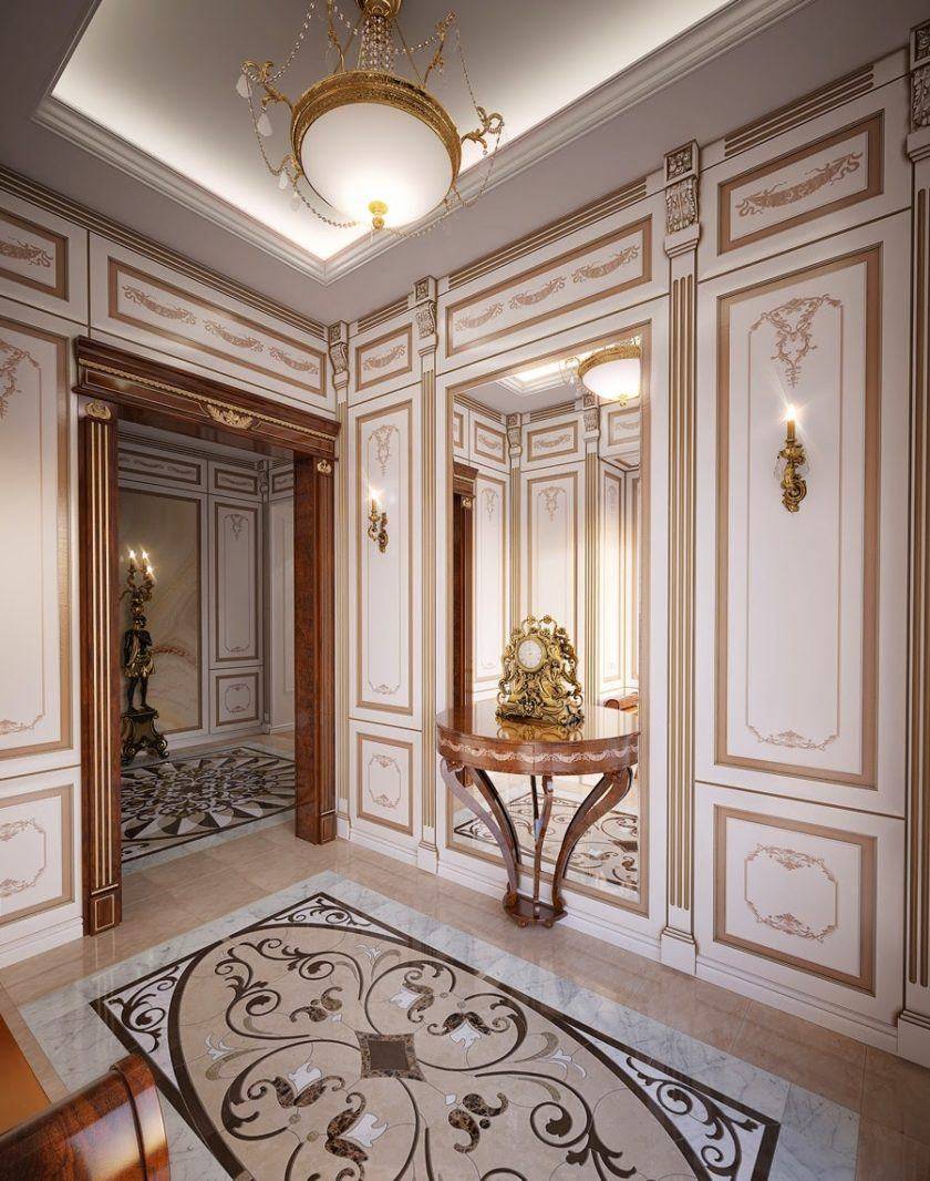 Как и другие помещения, барочная прихожая не терпит тесноты, а это значит, что встречать приходящих нужно в просторном холле. Вот почему барокко не подходит для небольших квартир — полное оформление интерьера реализовать попросту не удастся.