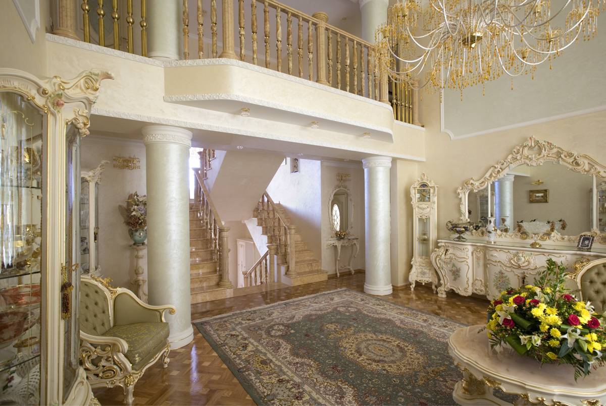 Этот стиль подойдет для частных домов больше, чем для городских квартир. В городе можно предпочесть современную версию царского стиля – необарокко, который характеризуется умеренным использованием декора и позолоченных элементов.