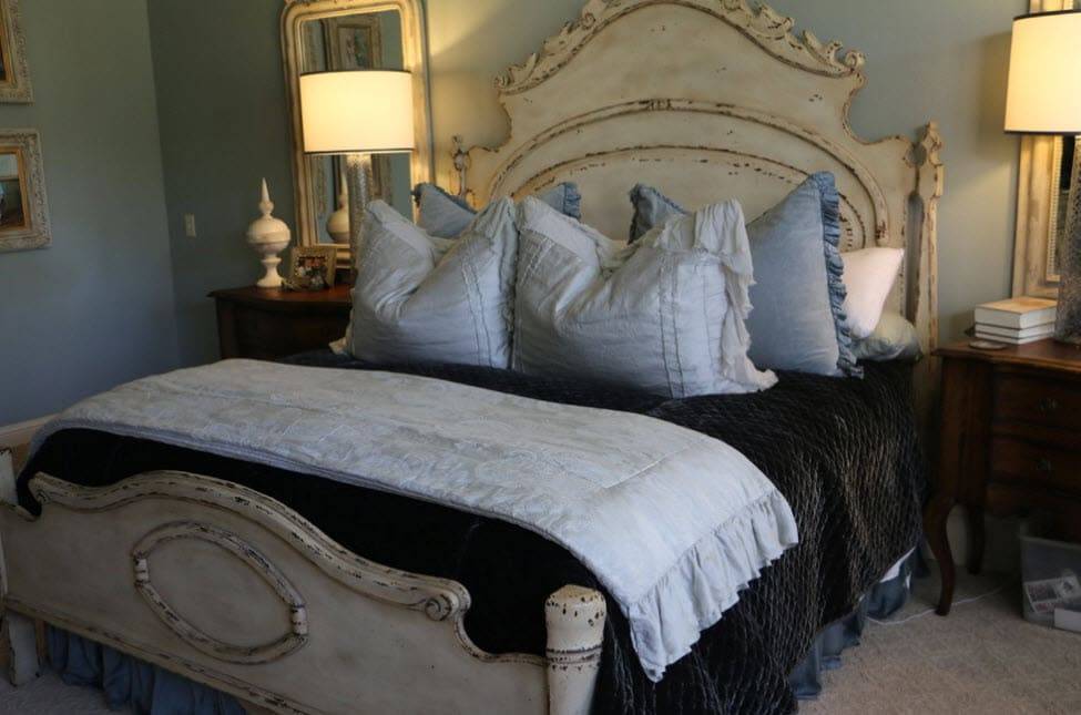 Стены можно украсить картинами с изображением французских пейзажей. Воссоздать романтику и шарм прованса помогут текстильные элементы, например, скатерти, покрывала и подушки, сделать которые можно своими руками. Для оформления спальни можно не только покупать вещи, но и найти их, порывшись в бабушкином сундуке, где найдутся старинные рамки для фото, расписные вазы и резные шкатулки.