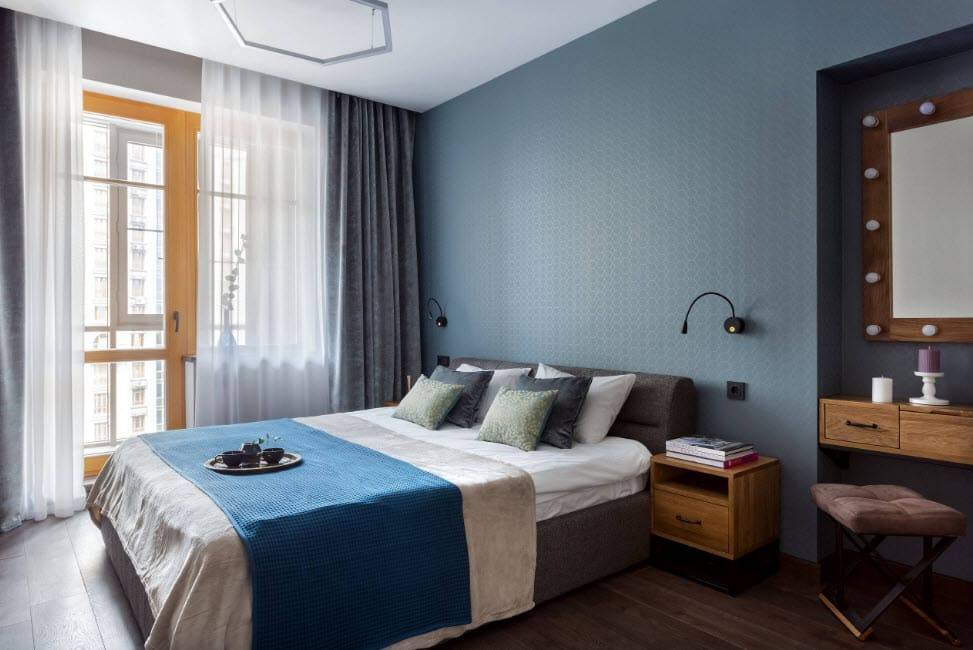Подбирая цветовую палитру спальни, стоит опасаться контрастных сочетаний красок, важно, чтобы используемые тона не вызывали раздражения и не диссонировали друг с другом. Предпочтительны сочетания нежных теплых или спокойных холодных оттенков