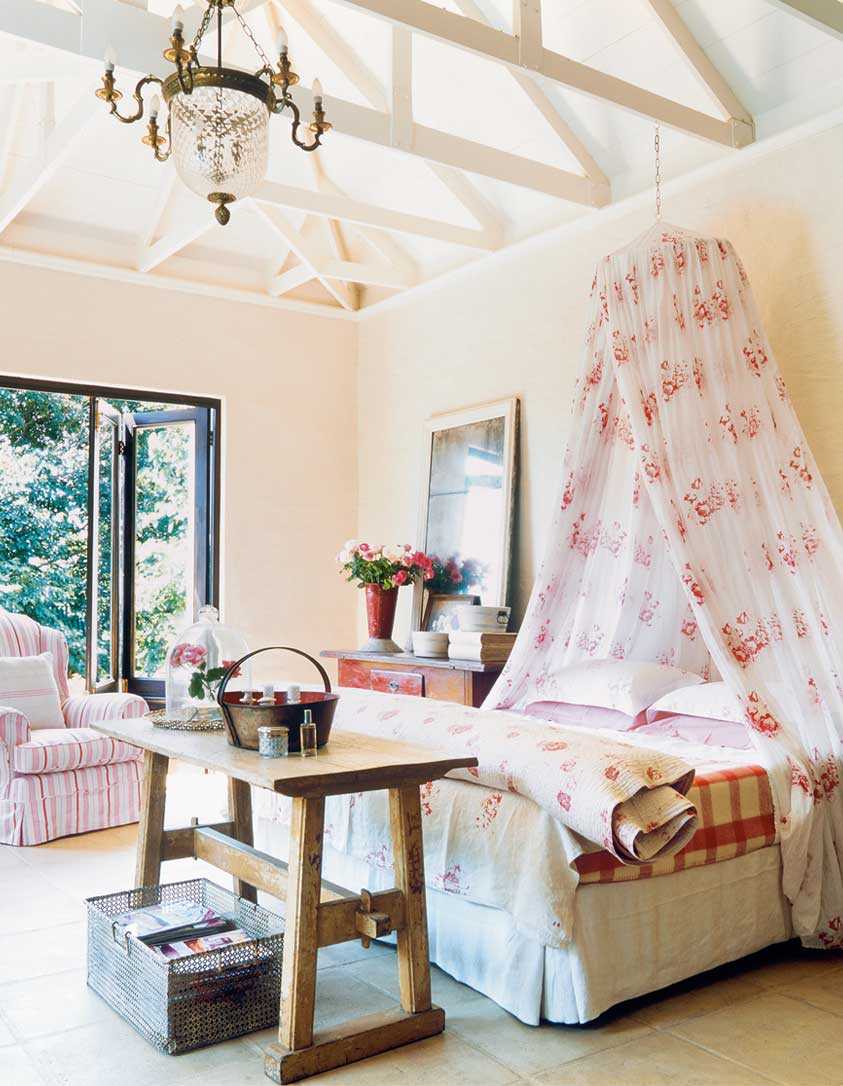 Милым и уютным решением будет спальня, оформленная в стиле кантри. Данный стиль предусматривает натуральную, экологичную мебель и предметы декора, сделанные из природных материалов. В комнате должно быть много свободного пространства и большое количество света.