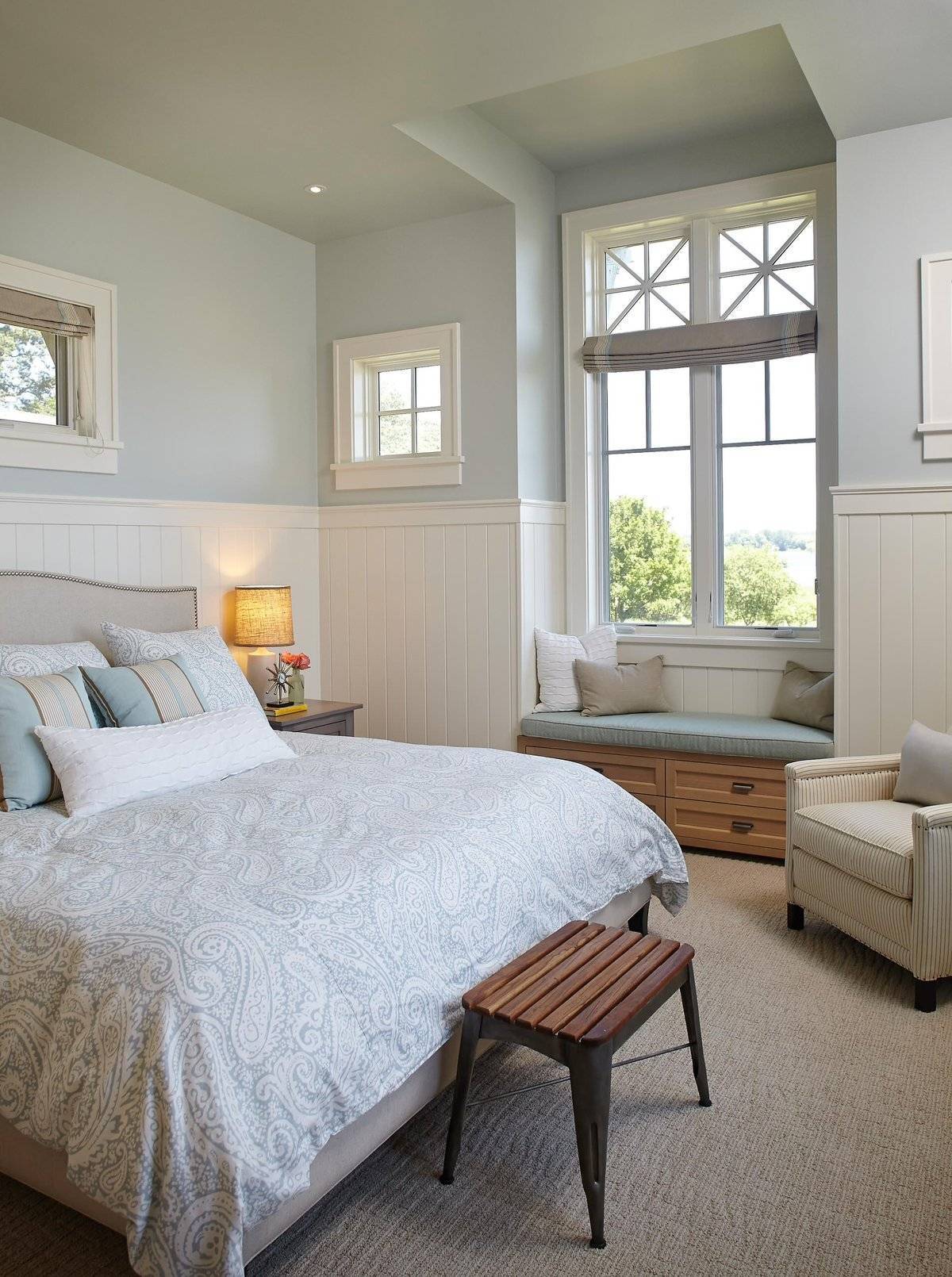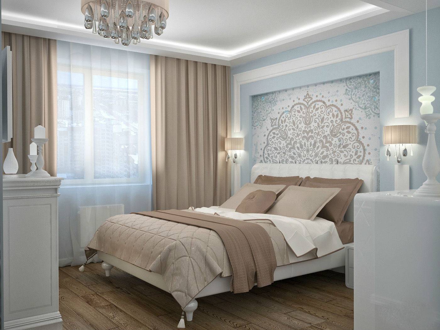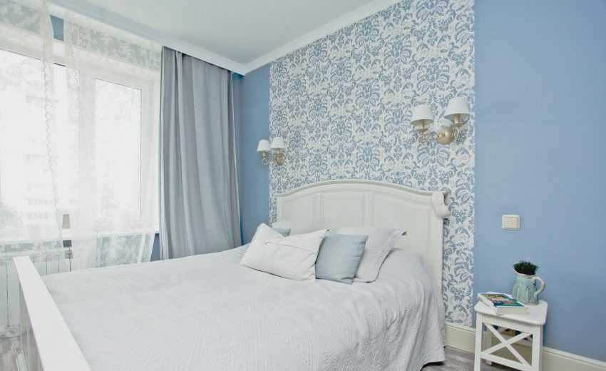 Голубые обои в спальне