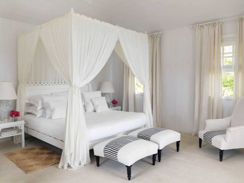 Дизайн спальни выполнен в белом цвете