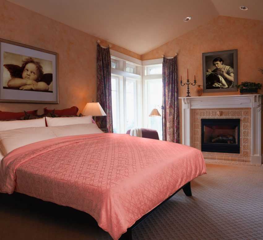 Персиковый подойдет для оформления спален в различных стилях, от классического до модерна.