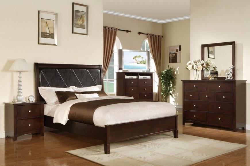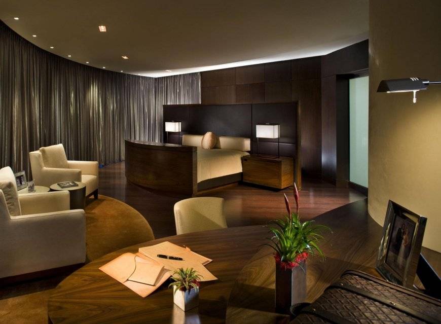 Спальня с темной мебелью свидетельствует об утонченном вкусе хозяев и об их любви к комфорту