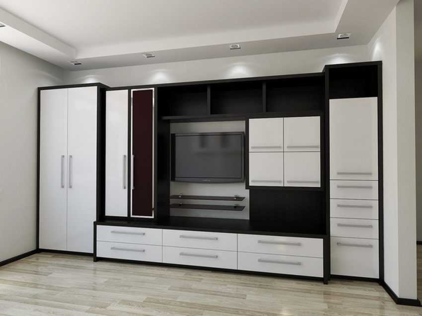 Очень часто стенка заключает в себе функции комода для белья, шкафа для легкой одежды, полочек для обуви, пуфика, тумбочки под телевизор. Это позволяет затратить намного меньше времени на подбор, приобретение и размещение каждого предмета и сэкономить денежные запасы семьи.