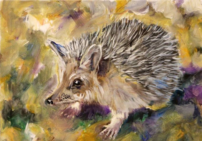 Когда все части ежа будут закреплены приступаем к нанесению защитного лака в область головы, лапок и тела. Вещество наносим в виде выпуклых капель.