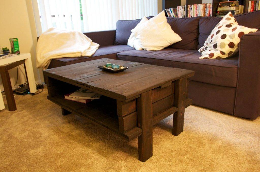 Конструкция из деревянных каркасных ящиков очень популярна в последнее время. Изготовление такого столика не требует дополнительных усилий