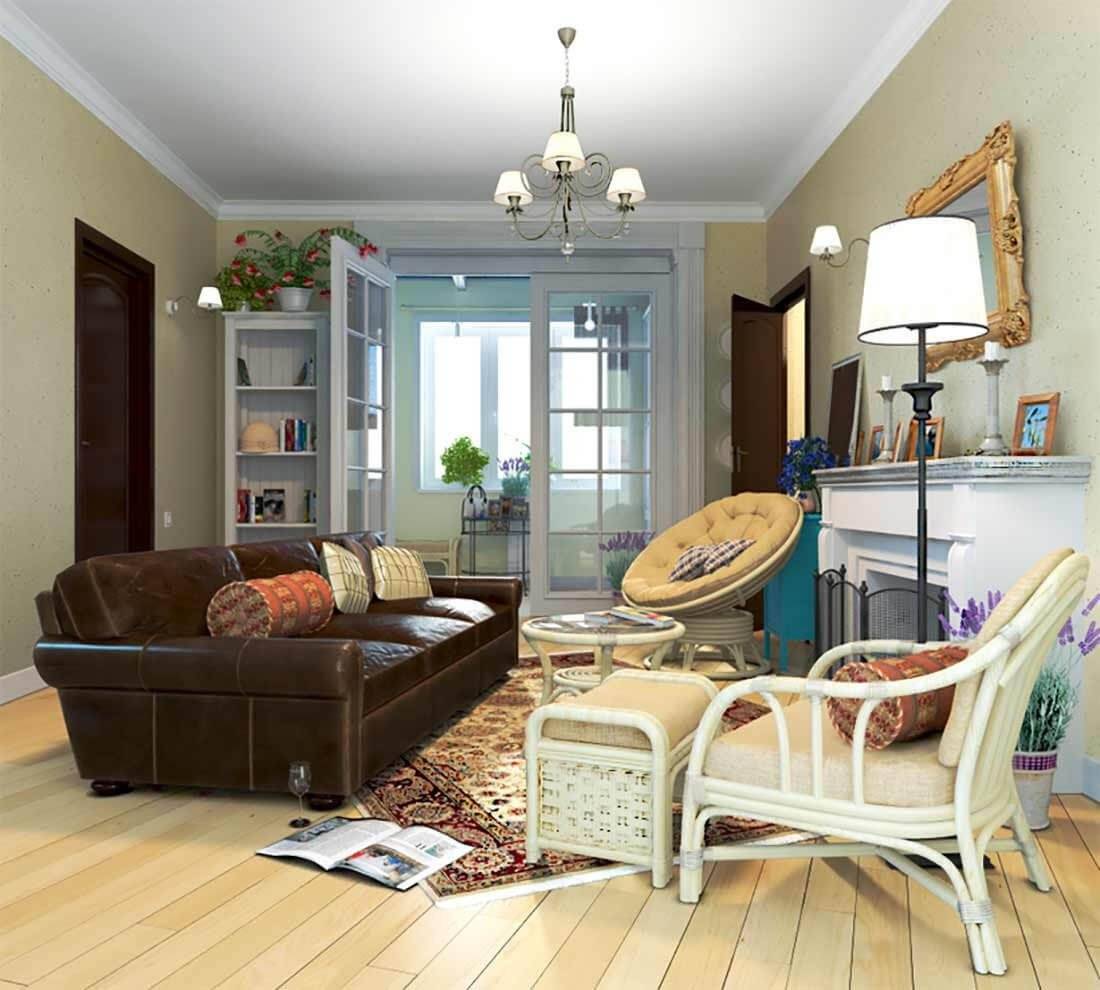 | Мебель | Если площадь помещения позволяет, то обычно присутствует пара диванов и два-три кресла. Это позволяет создать атмосферу полной расслабленности. Гостям всегда есть, где с комфортом расположиться. Стиль мебели европейский, но без излишеств – мягкие диваны и кресла с деревянными ножками, стулья и табуреты, шкаф, комод |
