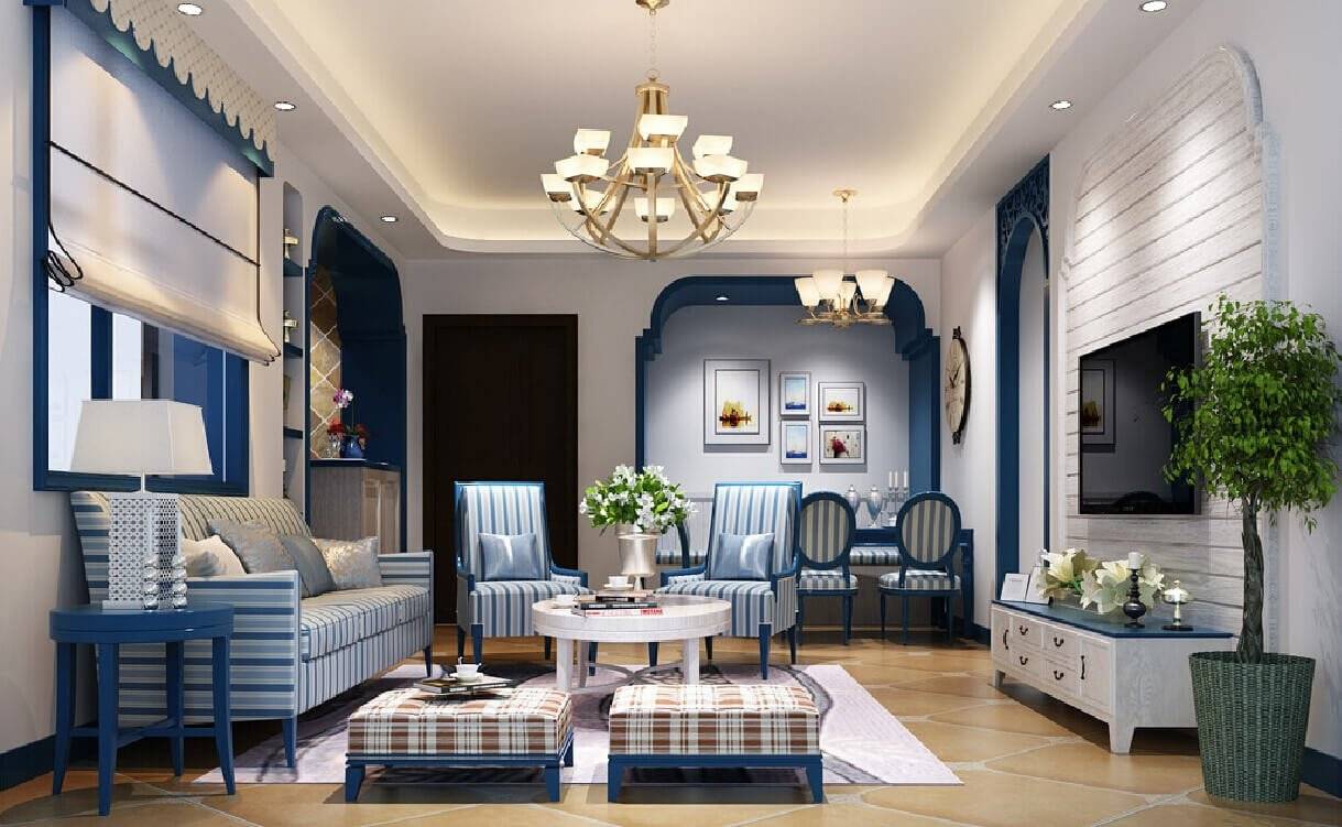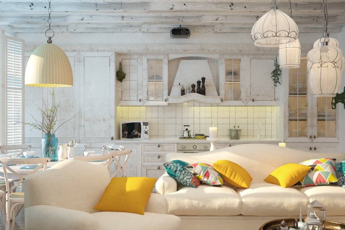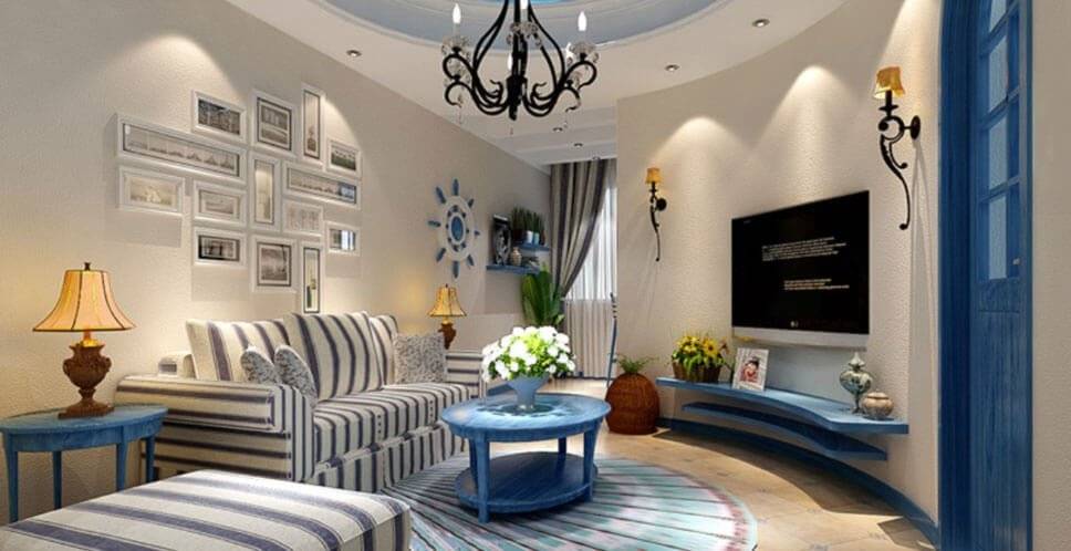 Средиземноморский стиль отличает легкость и отсутствие вычурности, а основной его особенностью является большое количество декора в интерьере. В помещении должны находится античные керамические и мраморные предметы. Как дополнительные аксессуары используют: элементы, характерные для романтического стиля, а именно накидки, ручные поделки, кружевные атрибуты, текстиль в бело-голубых тонах и с вышивкой, натюрморты из фруктов и морские мотивы.