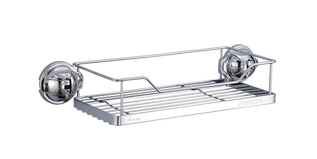 Есть неплохая и бюджетная альтернатива дорогостоящим конструкциям – полочки на присосках. Они подойдут для любого помещения, могут быть разными по форме. Они легко монтируются и демонтируются, снимаются для ухода (мытья) и переносятся в другой угол комнаты.