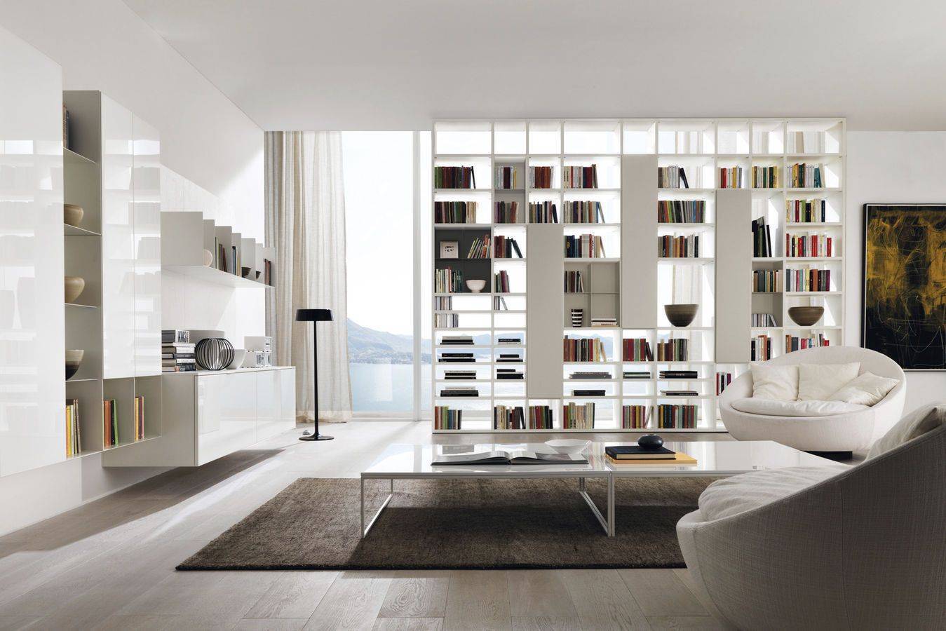 Стеллажи свободнонесущего строения выполняют декоративную функцию.