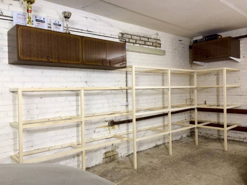 Этот вид конструкции не так практичен дома. В основном он применяется на производстве. Внутри него располагаются перестенки, которые изготовляются из досок, аналогичным полкам.
