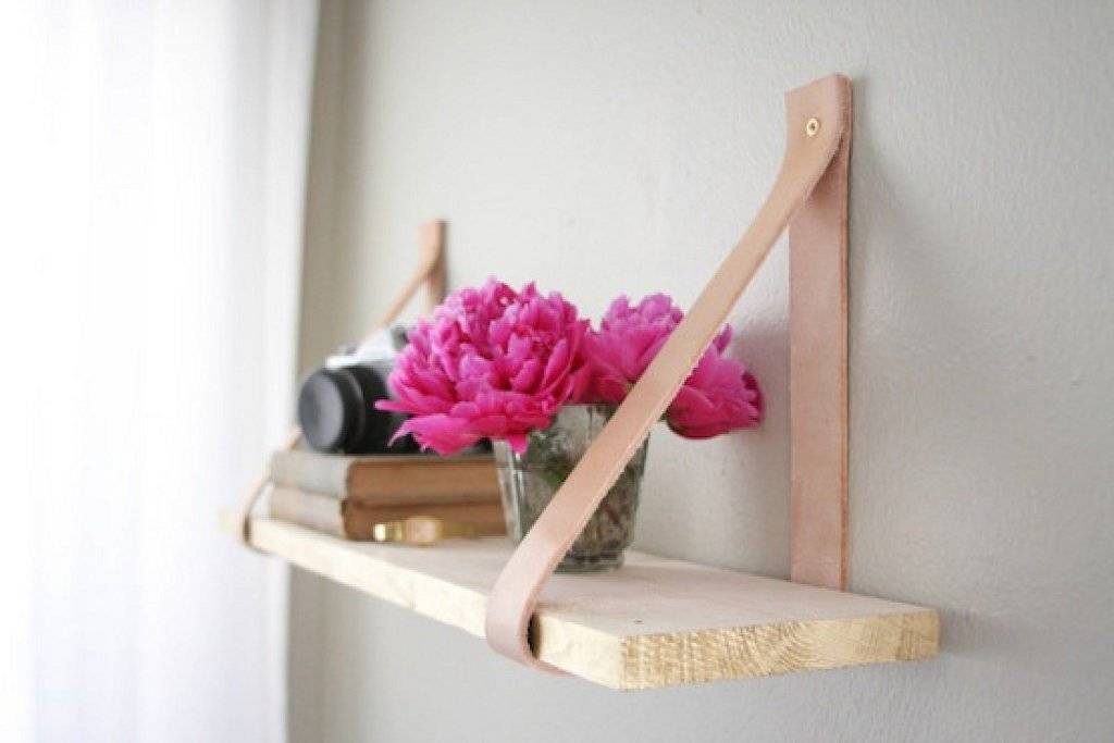 Самую простую полку можно изготовить самостоятельно. Подвесная полка для цветов потребует для изготовления минимум времени и материалов. Её легко сделать, поскольку она представляет собой деревянную планку на ремне или кожаной полоске, прикреплённую к стене гвоздями.