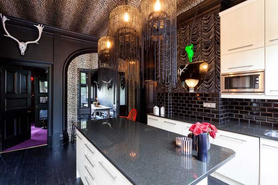 Интерьер кухни, выполненный в этом направлении сочетает в себе особенные уникальные ноты, выделяющие его на фоне других дизайн-проектов. Здесь используют усовершенствованные модели бытовой техники, необычные конструкции кухонного гарнитура, а также огромное количество декораций.