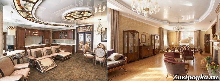 Рассмотрим, какие варианты отделки элементов помещения в данном стиле имеются.