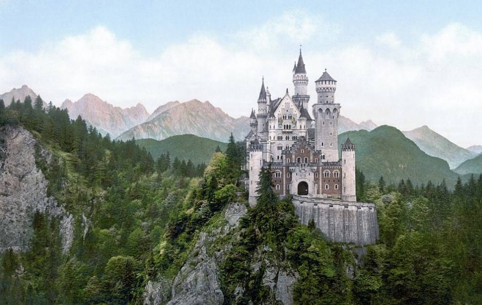 3. Применяют принцип «белое на белом». Для это выбирают дорогие обои с шелкографией или тиснением. Ними оформляют квадраты или прямоугольники на стене, заключенные в позолоченные лепные рамы. Стену вокруг них красят белой матовой краской. Все лепные детали потолка и стены выкрашивают золотой акриловой краской. Порталы украшают белыми скульптурами в театральных позах.