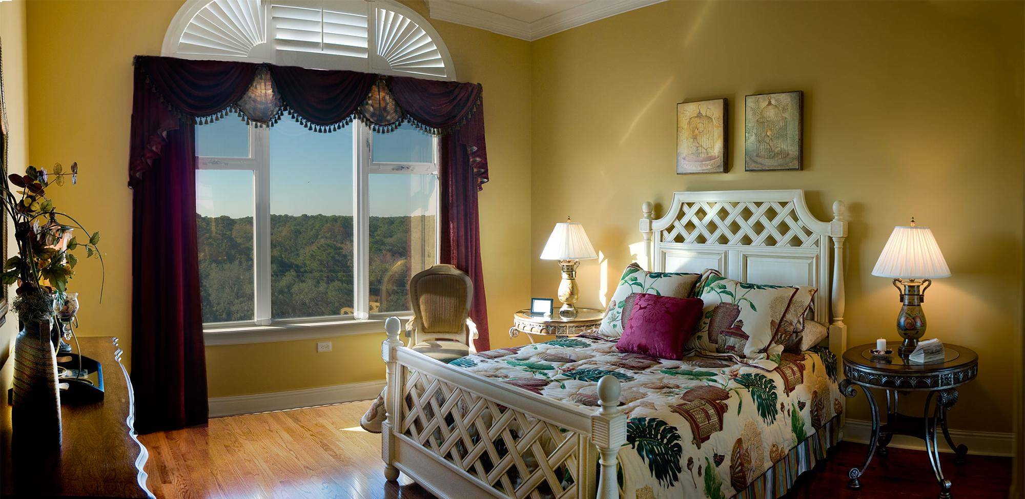 Спальня с интерьером бохо имеет дружественный и художественных дух. В этом помещении преобладают сугубо пастельные тона. Но, не обходятся без акцентов. Они прослеживаются в накидках на кровать, наволочках декоративных подушек. Чтобы комната была более мягкой и уютной прибегают к организации мерцающего освещения (устанавливают фонарики, свечи, делают гибкую подсветку у кровати), навешивают прозрачные воздушные балдахины над спальным местом.
