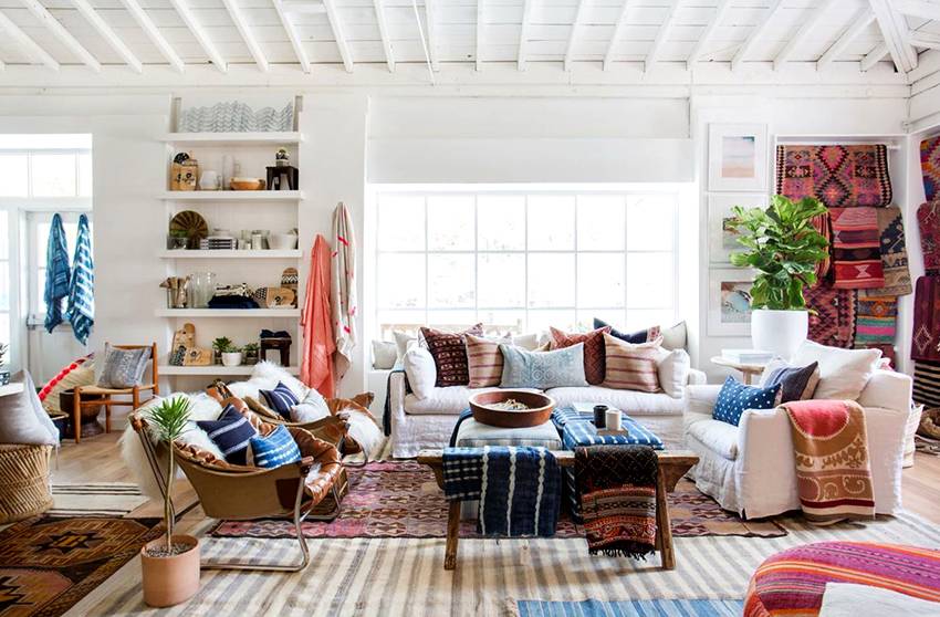 Мебель в стиле бохо в интерьере квартиры: фото красочных комнат