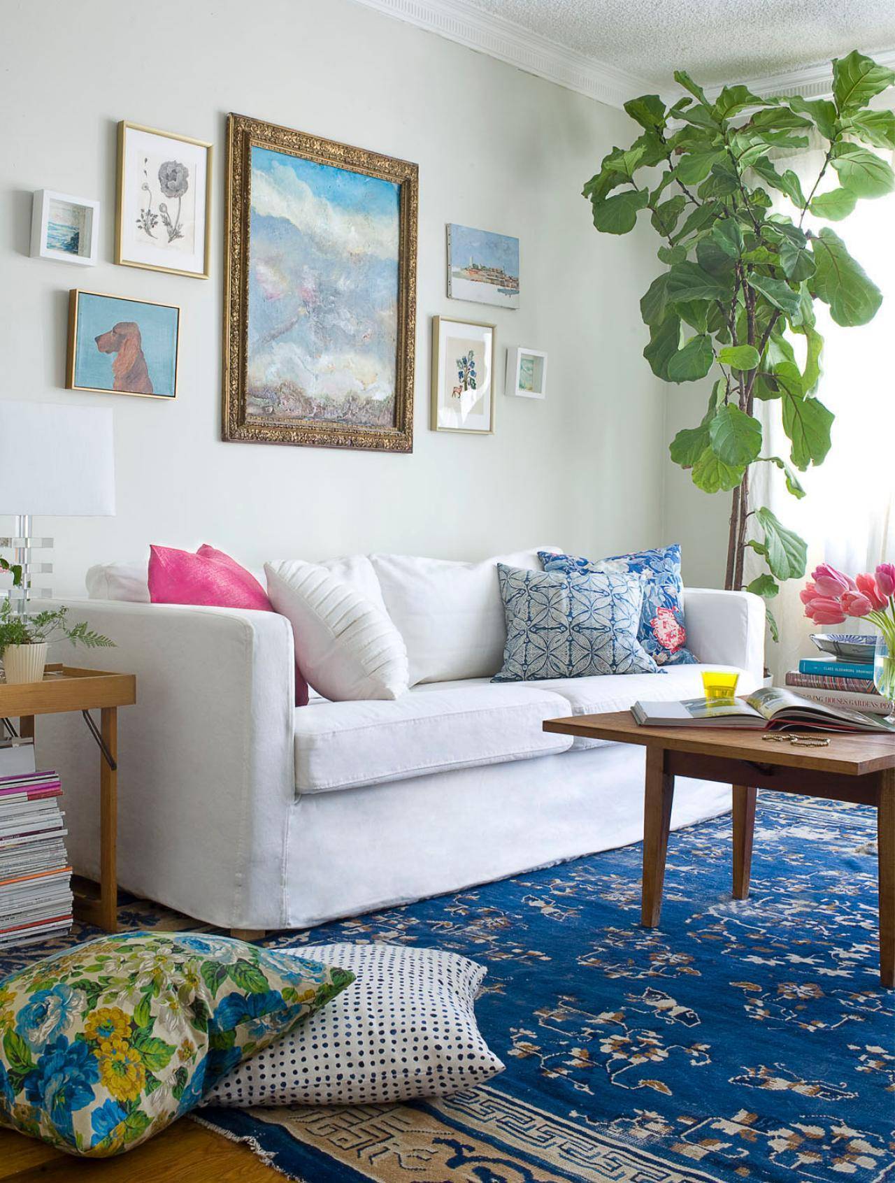Чтобы воссоздать данный стиль в интерьере, нужно определить несколько основных контрастных цветов, добавив пару ярких, но натуральных акцентов. Если помещение слишком пёстрое, его можно разбавить, «успокоить» нейтральными тонами, на фоне которых цвета проявят себя. Пусть это будет однотонная кремовая или белая стена, которая выделит яркие предметы интерьера и текстиль.