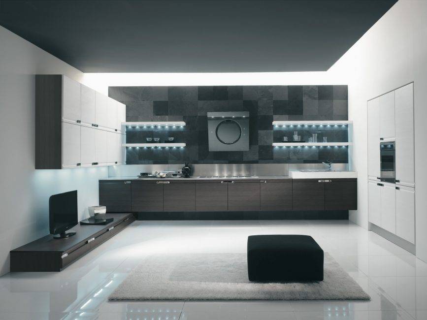 Современный интерьер в доме Хай-тек: броская бытовая техника, однотонные стены, футуристичное освещение и строгая геометрия пространстваИсточник domsumom72.ru