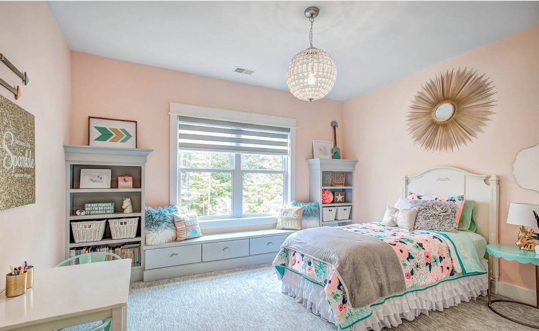 - розовый — тот нежный его оттенок, который часто используют для детских спален;