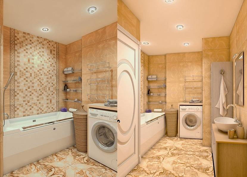 Вариант дизайна ванной со стиральной машиной №1