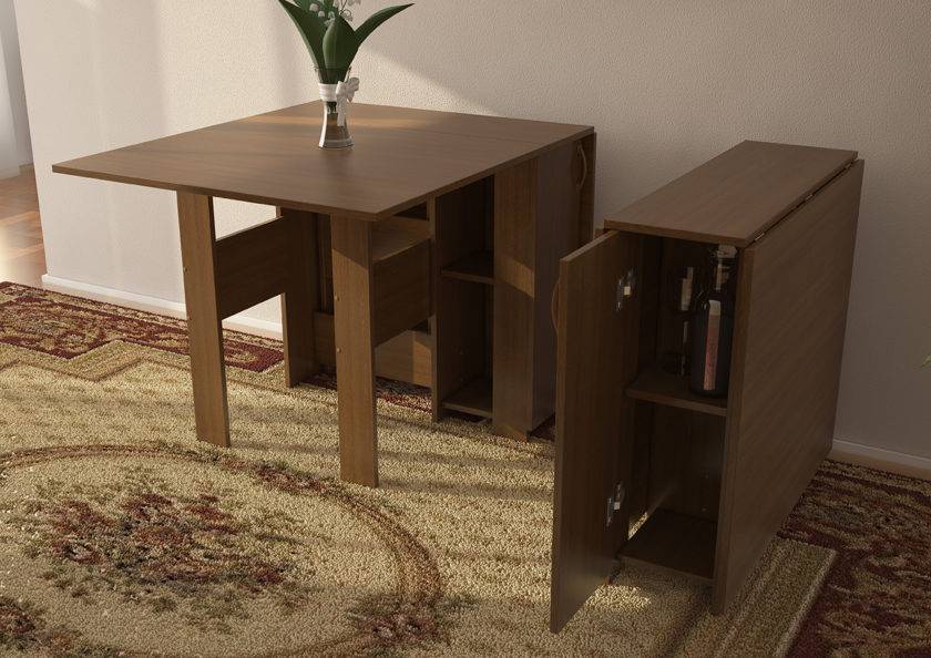 Существует множество различных моделей: столы-книжки узкие и широкие, маленькие и большие, обыкновенные журнальные, компьютерные столы-трансформеры, кухонные т.д.