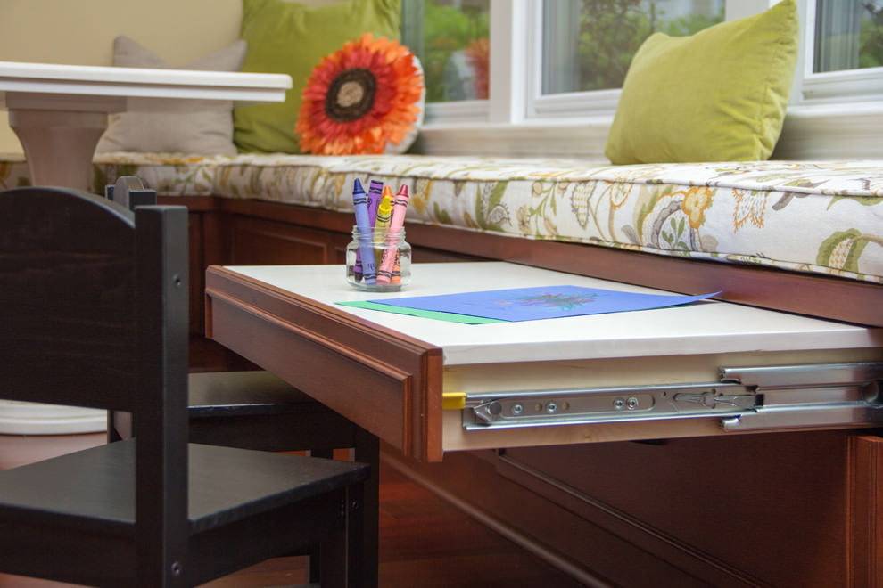 Расширенный подоконник позволит расположить на нём всё необходимое для игр или занятий
