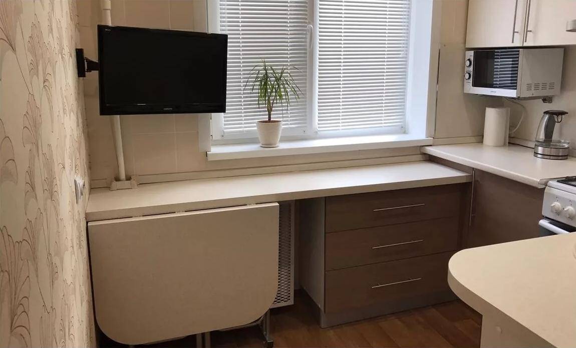 Встроенный в подоконник стол позволяет сэкономить место и денежные средства