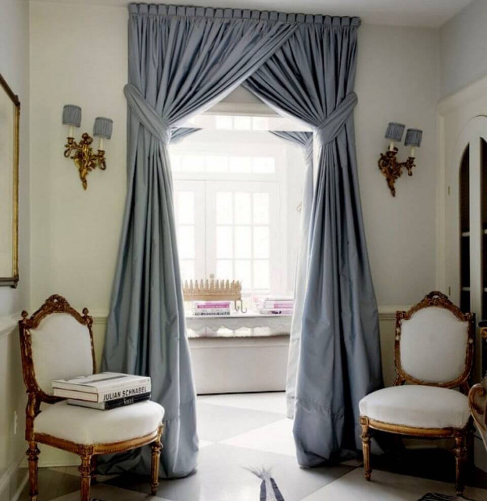 Межкомнатные шторы отображают в себе эти стилистические особенности. Органично впишутся в интерьер классические полотна, сложные шторы. Арочные проёмы, эркеры — характерный элемент классицизма. Их можно оформить с помощью итальянских полотен. Уместны декоры в виде подхватов, украшений типа кистей, бахромы. Эркерную часть зонируют с помощью штор, гардинного полотна, которые дублируют цвет и фасон занавесей на окнах. Для оформления дверей со стеклом уместны полотна типа «песочные часы».