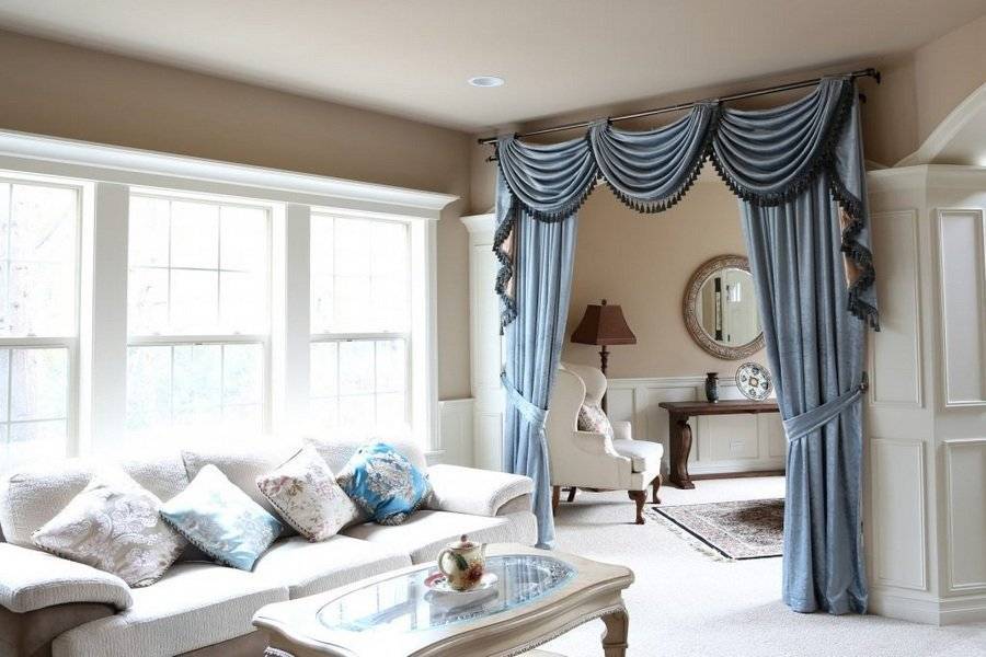 шторы на дверной проем с ламбрекенами – отличный выбор для гостиной в классической стиле