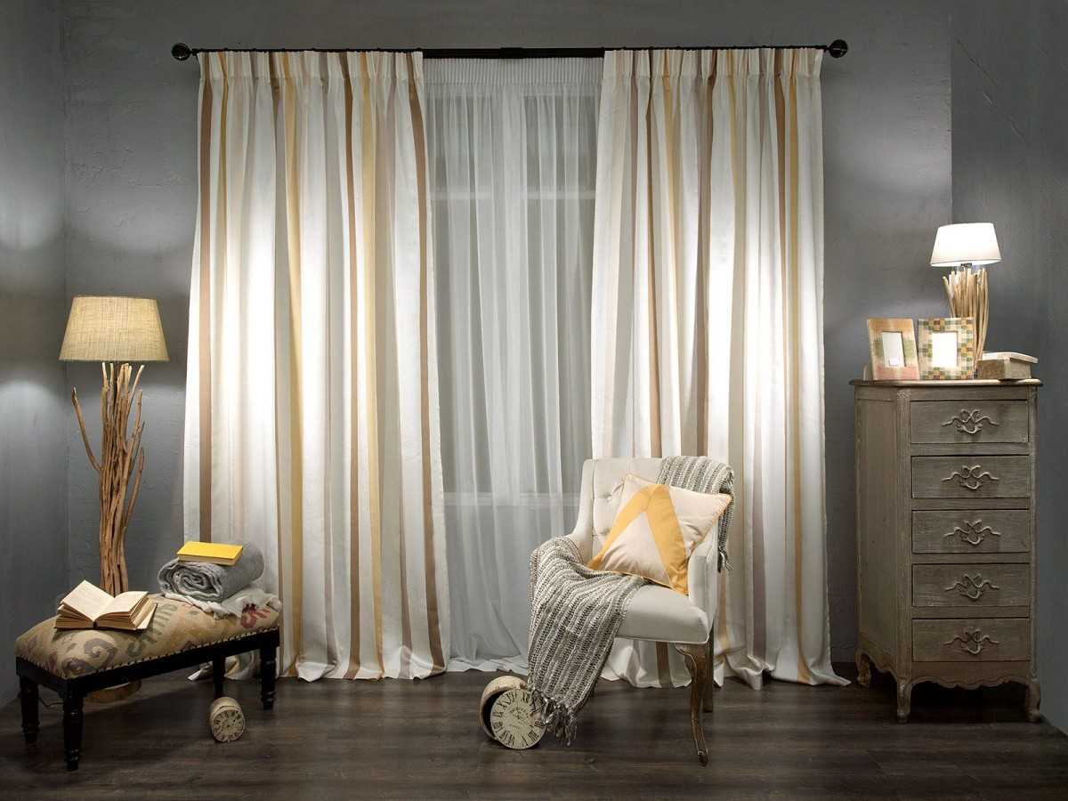На фото модных штор можно увидеть вариант грамотного сочетания штор с общим стилем комнаты.