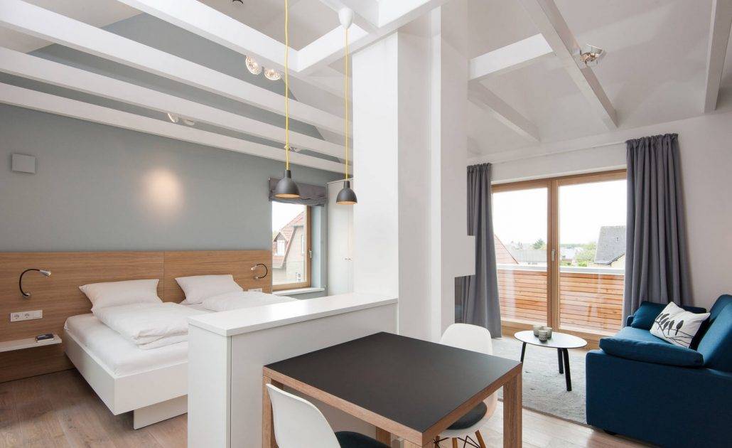 Оформление в стиле минимализм похоже на хай-тек, но различие в цвете и тканях. Ткани гладкие и неблестящие.