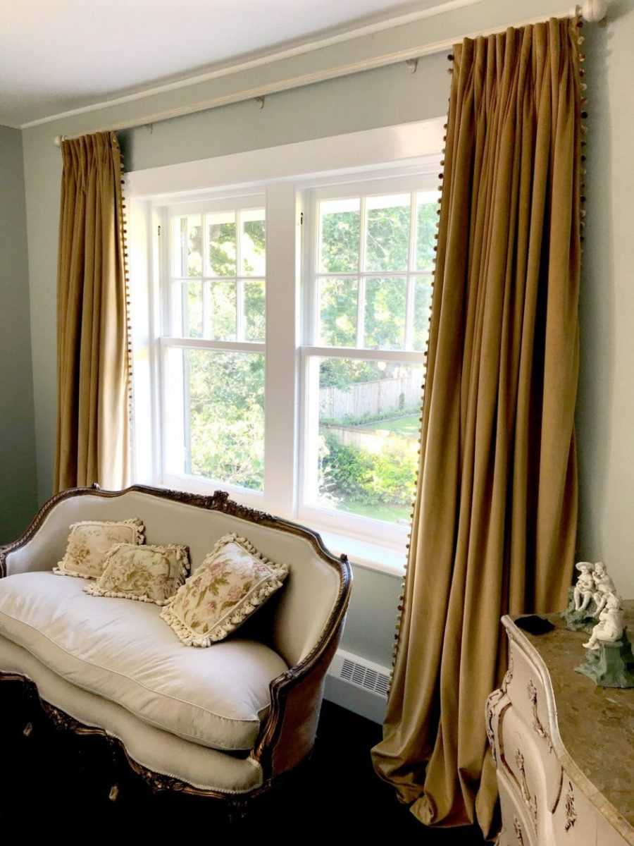При использовании специальных приемов гардины зрительно расширяют проем. Например, на 2 близко расположенных окна вешают 1 общее полотно или располагают занавеску по всей ширине стены.