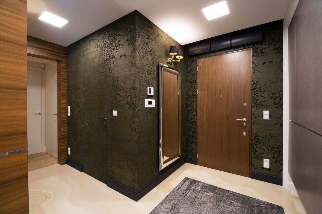 - с точки зрения чистоты актуально для быстро загрязняющихся участков в коридоре (около дверных зон, вешалки, полки с обувью, банкетки, зеркала, в области углов) использовать износостойкие стеновые покрытия – керамогранитные плиты, декоративный камень или металлизированные панели.
