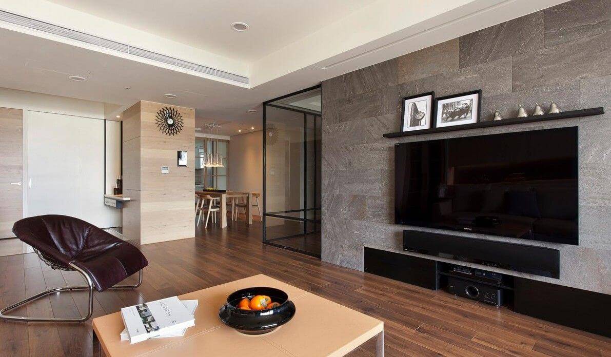 Конструкции перегородок могут не только разделять и зонировать помещение, но и служить отличным местом для телевизора. Если поместить его в поворотную сердцевину – можно смотреть один телевизор в нужной зоне.