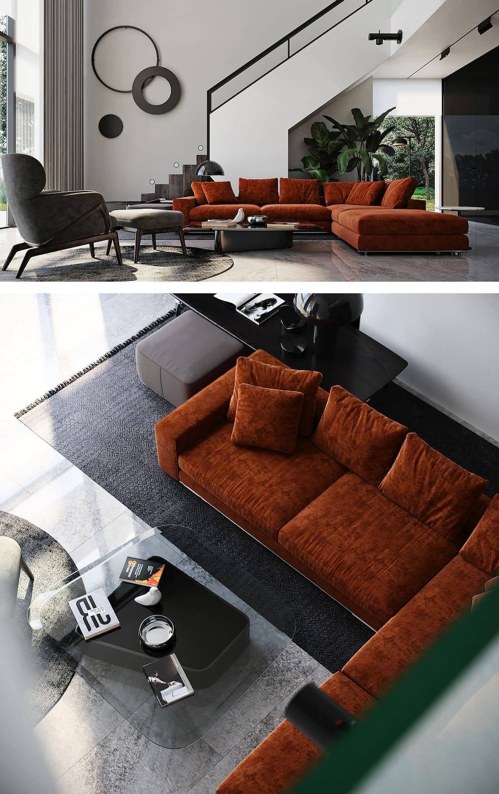 Модульный диван – это находка для маленькой гостиной. Ведь в сложенном виде он занимает совсем мало места. А когда придут гости, вы можете расставить части дивана именно так, как вам нужно.