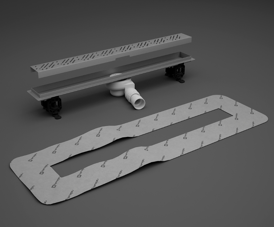 - выполнение черновой бетонной стяжки толщиной около 4 см, которая заполняет все свободное пространство до фланца сливного трапа. С помощью правила производится выравнивание слоя раствора;размещение гидроизоляционной мембраны, которая необходима для обеспечения дальнейшей герметизации пола;установка внутренней части в корпус трапа;