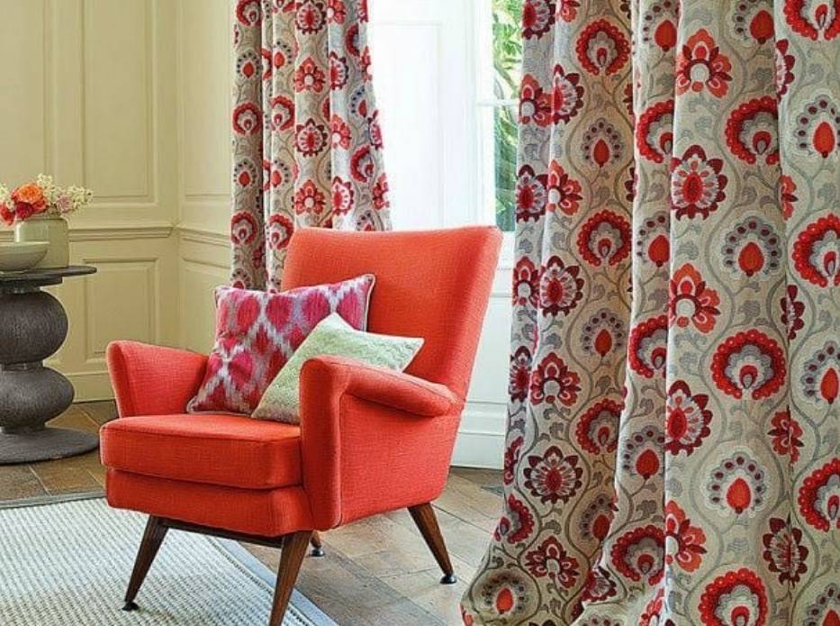 Если следовать рекомендациям дизайнеров, то легкие и изящные тканевые изделия следует выбирать при большом количестве декора и мебели. Так, если обои имеют выраженный принт, то занавеси должны быть монохромными. Узорчатые шторы подойдут к просторной гостиной со спокойным декором и сдержанной мебелью.