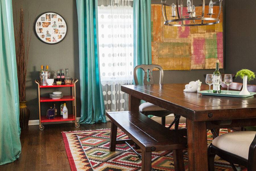 Бирюзовые шторы: преимущества и недостатки бирюзовой гаммы. Правила сочетания бирюзовых штор с элементами интерьера. Выбор материалов ткани (фото + видео)