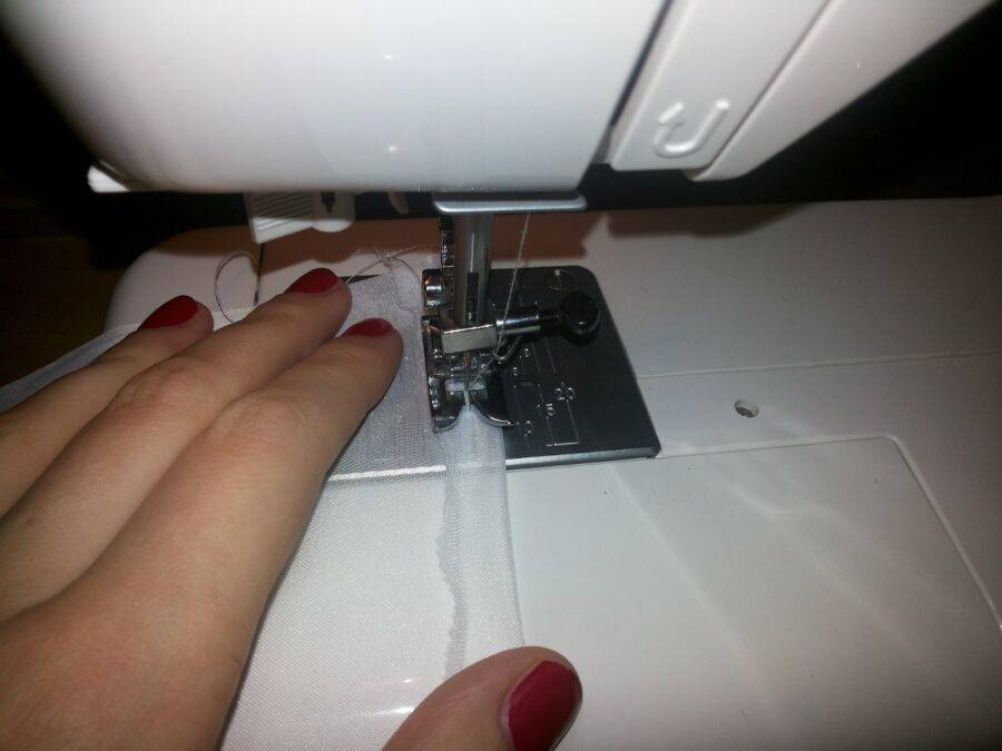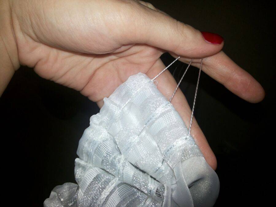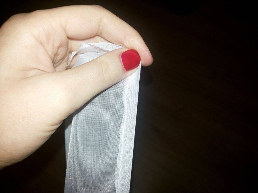 Для этого удобно использовать специальную ленту, если гардина будет закреплена на обычные крючки. Важным условием получения качественной гардины из тюля является выполнение аккуратных швов.