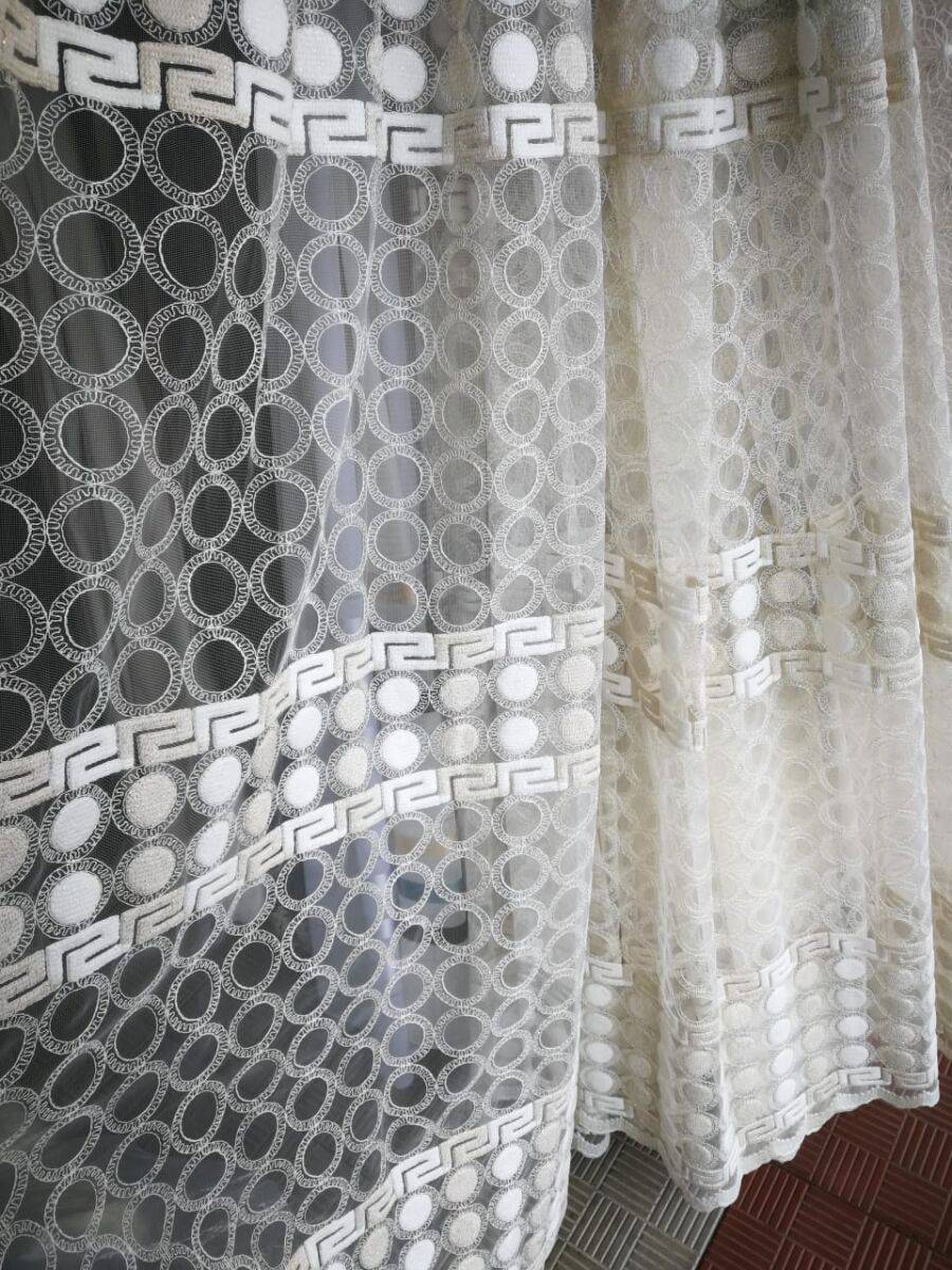 Обратите внимание на плетение нитей − модная тюль имеет простое квадратное плетение под мешковину с уплотнениями и узлами. Лен