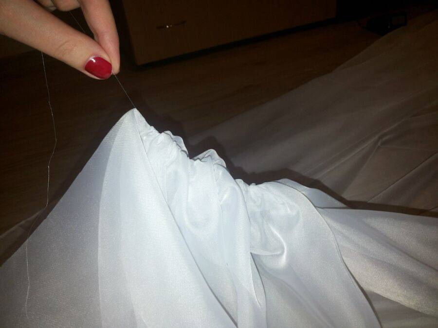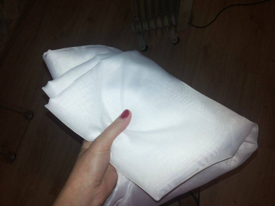Раскрой следует проводить на ровной поверхности. Постелив байковое одеяло, несложно справиться даже с таким скользким материалом, как органза.